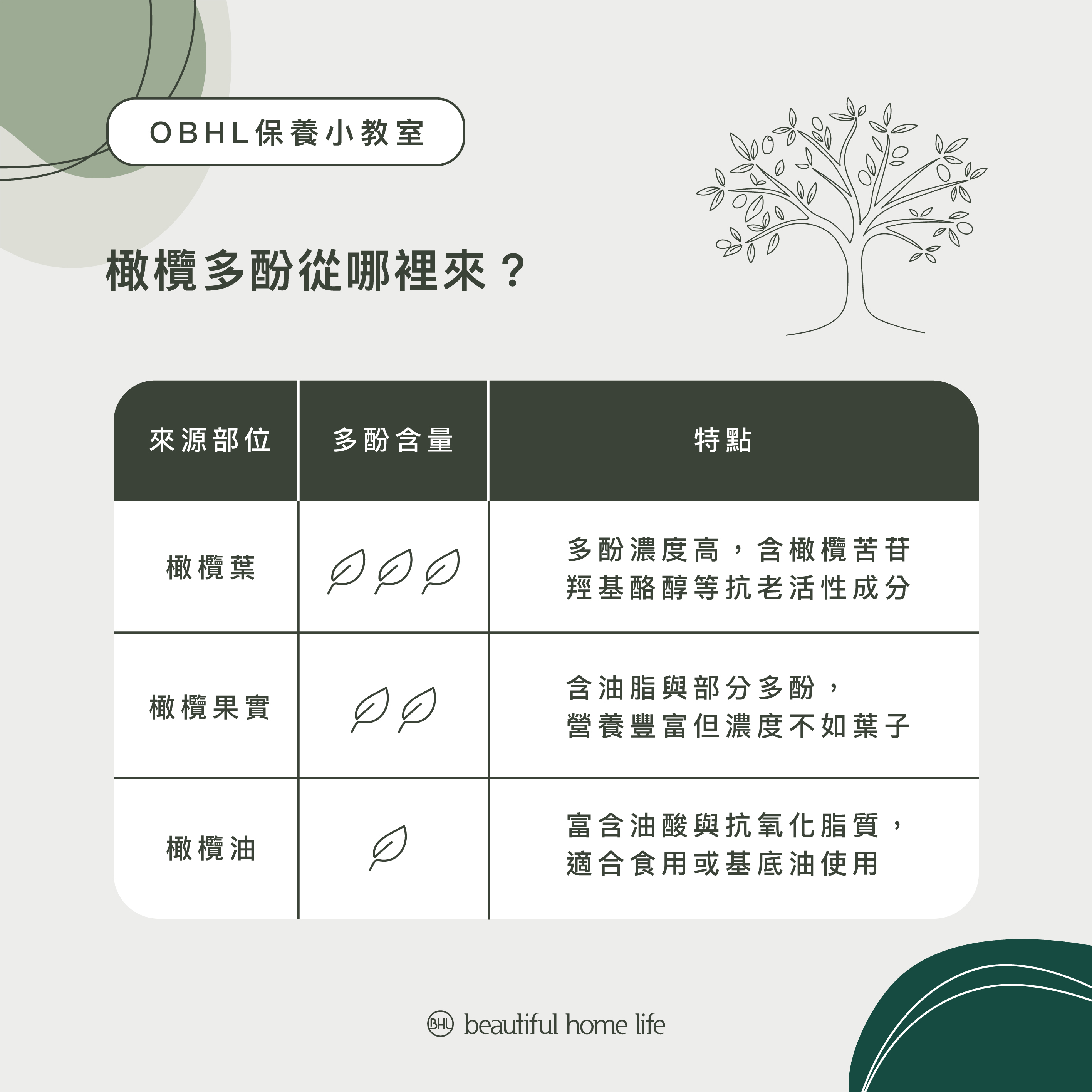 這些成分中富含植化素,能提供身體與肌膚日常保護,也正是「橄欖多酚」開始受到重視的原因。