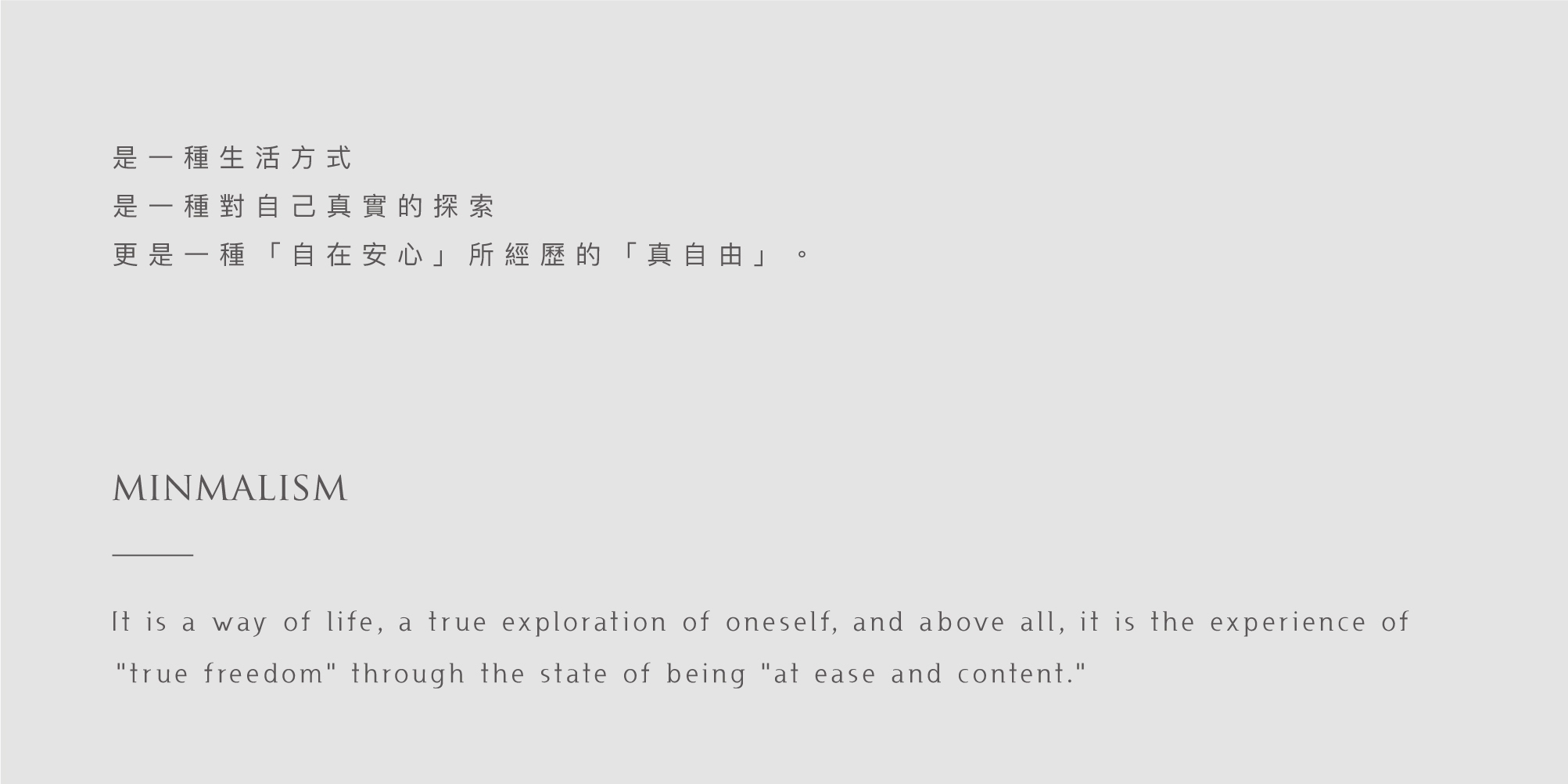「極簡minmalism 」 是一種生活方式 是一種對自己真實的探索 更是一種「自在安心」所經歷的「真自由」。
